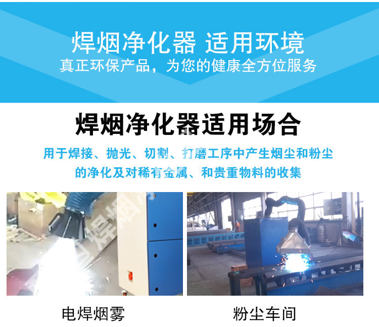移動式焊煙凈化器 本除塵器由上箱體、灰斗、梯子平臺、支架、脈沖清灰和排灰裝置六部分組成,主要用于移動焊接工位。適用于各種焊接、打磨等場所產(chǎn)生煙塵和粉塵的凈化以及對稀有金屬、貴重物料的回收等;